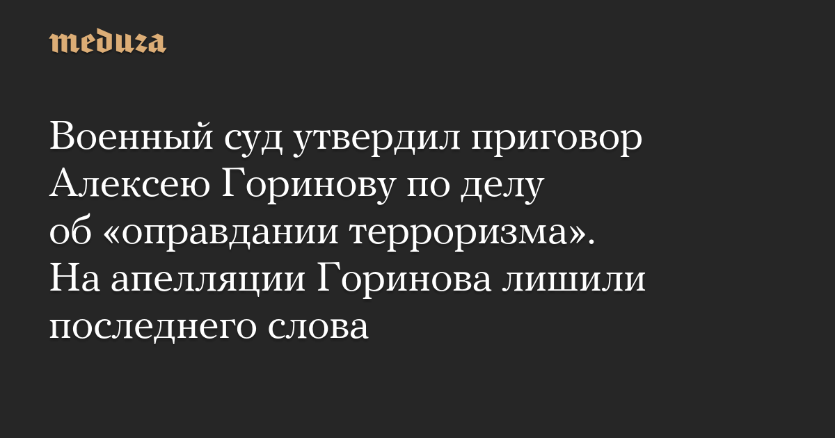 Военный суд утвердил приговор Алексею Горинову по делу об «оправдании терроризма». На апелляции Горинова лишили последнего слова