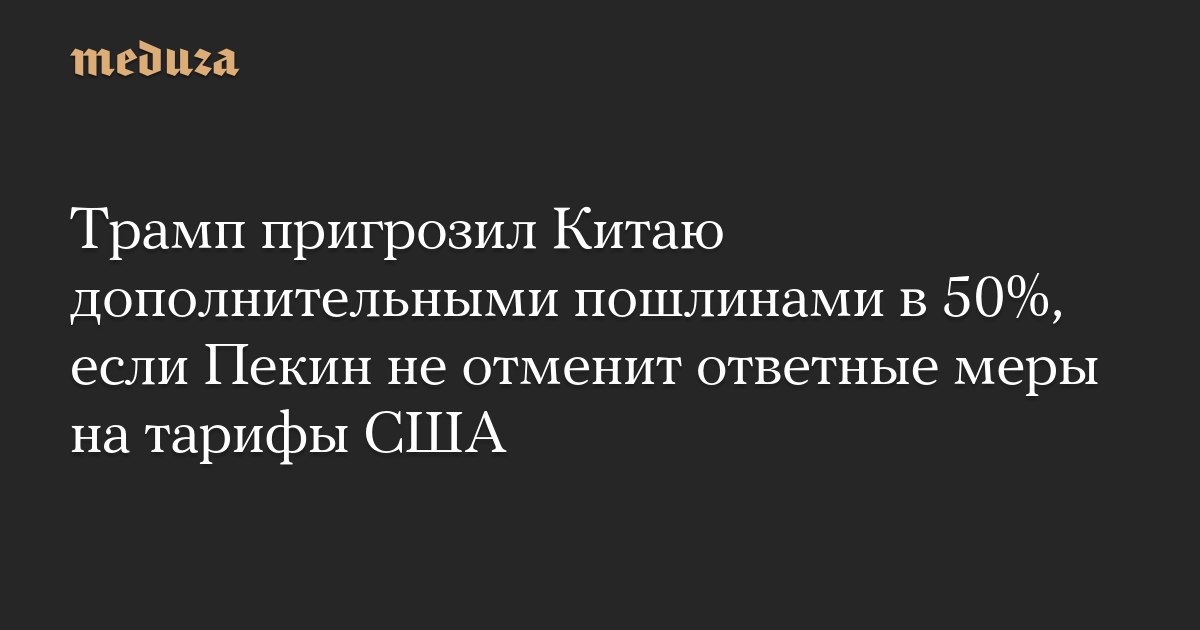 Трамп пригрозил Китаю дополнительными пошлинами в 50%, если Пекин не отменит ответные меры на тарифы США