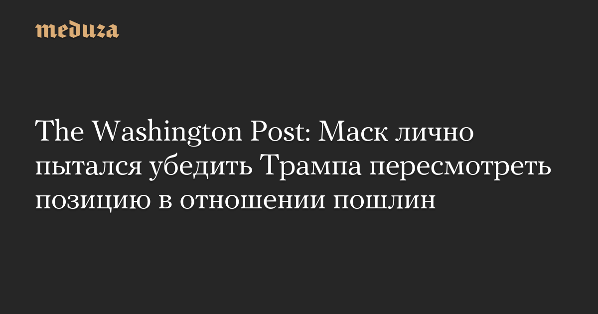 The Washington Post: Маск лично пытался убедить Трампа пересмотреть позицию в отношении пошлин