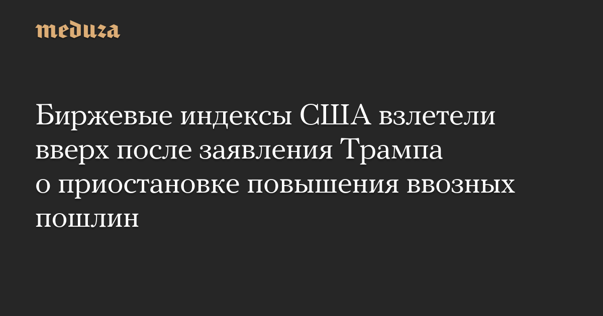 Котировки акций на американских биржах резко выросли после того, как президент США объявил о приостановке на 90 дней повышения ввозных пошлин для большинства стран мира.