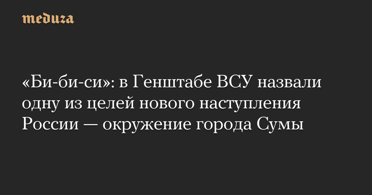 «Би-би-си»: в Генштабе ВСУ назвали одну из целей нового наступления России — окружение города Сумы