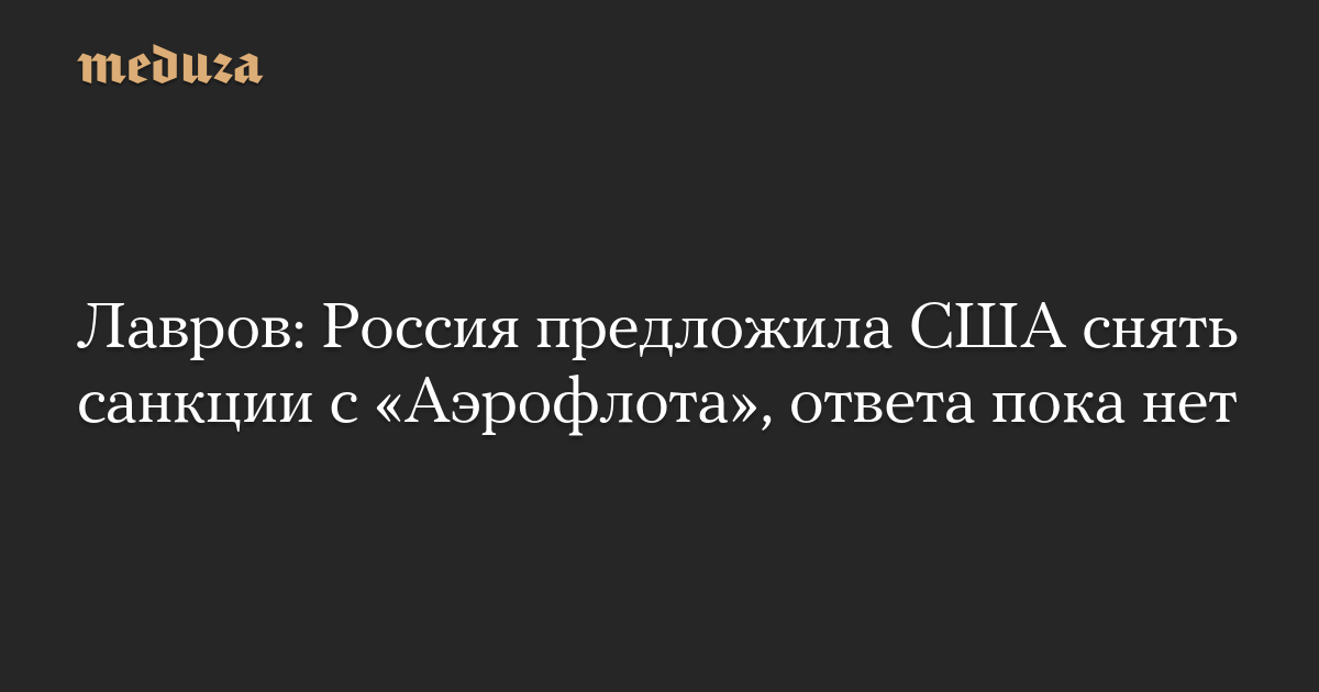 Лавров: Россия предложила США снять санкции с «Аэрофлота», ответа пока нет