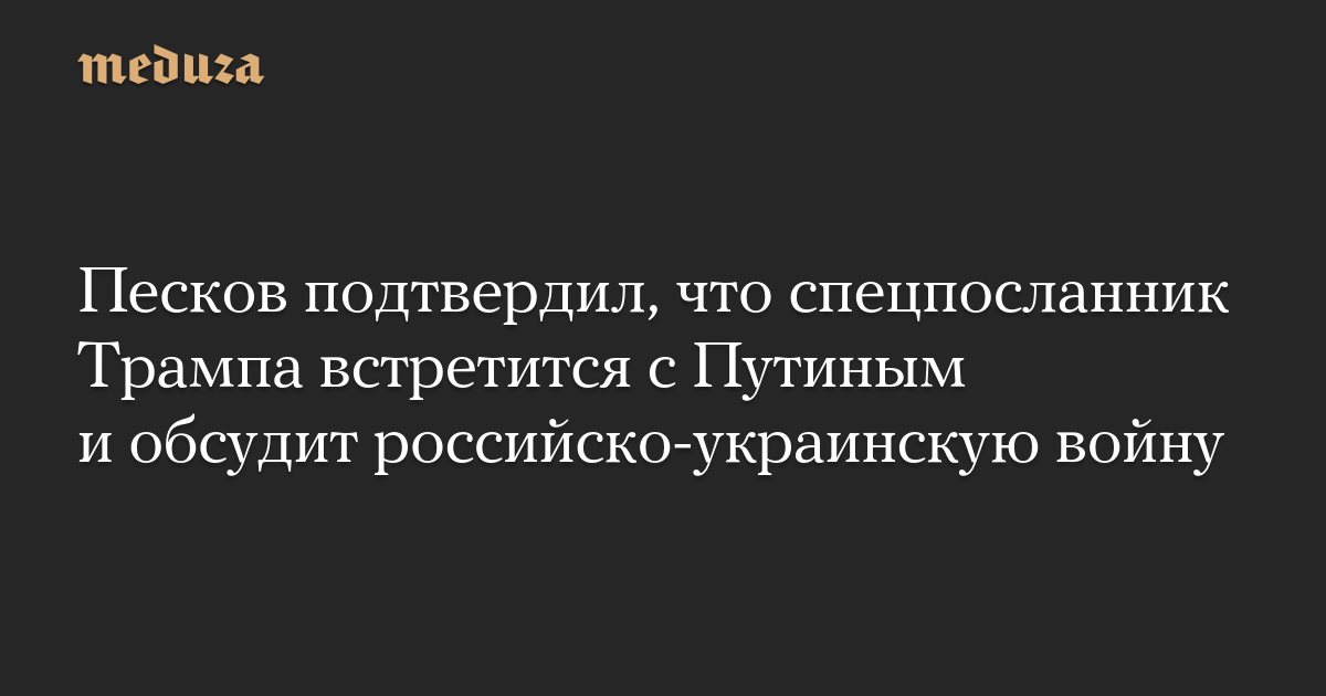 Песков подтвердил, что спецпосланник Трампа встретится с Путиным и обсудит российско-украинскую войну