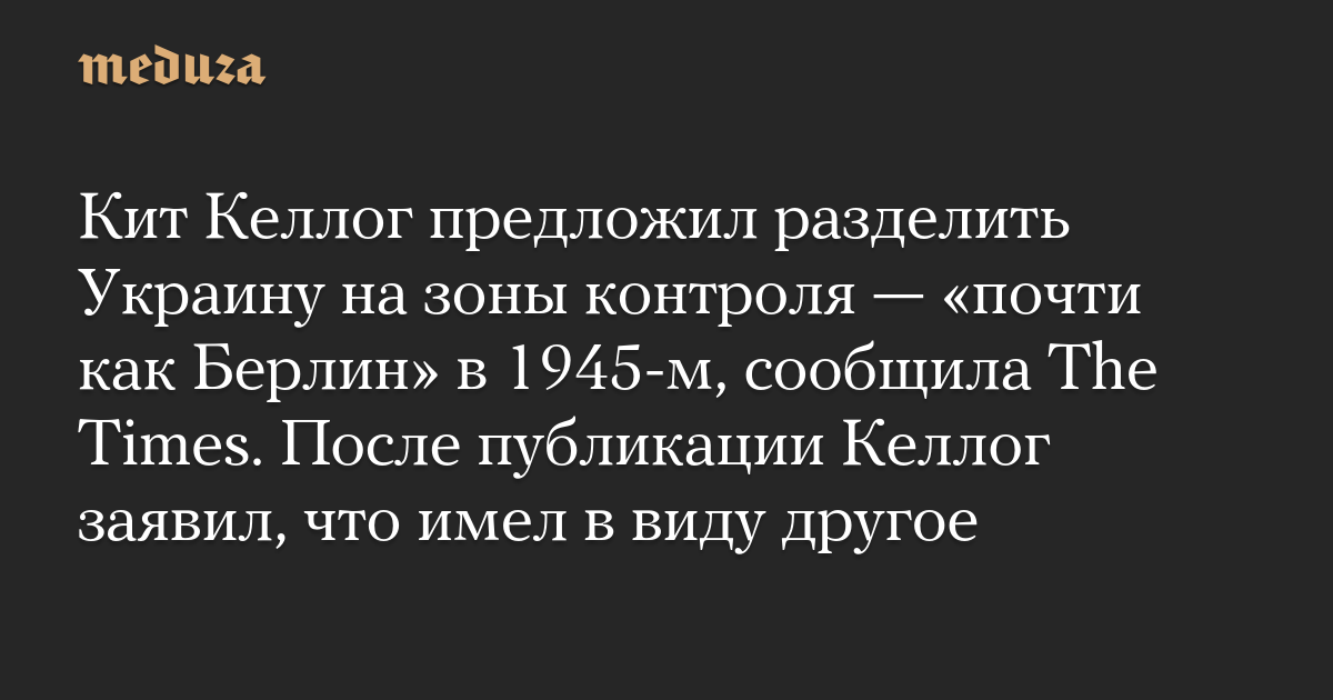 Кит Келлог предложил разделить Украину на зоны контроля — «почти как Берлин» в 1945-м, сообщила The Times. После публикации Келлог заявил, что имел в виду другое
