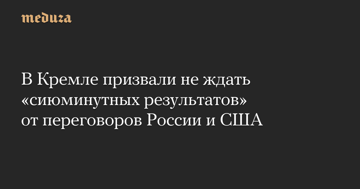 В Кремле призвали не ждать «сиюминутных результатов» от переговоров России и США