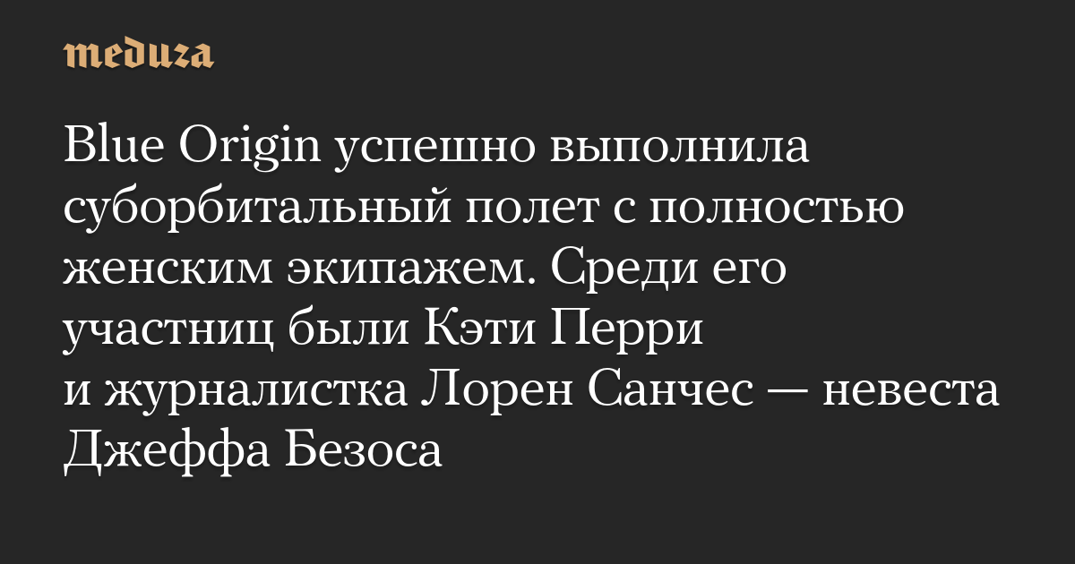 Blue Origin успешно выполнила суборбитальный полет с полностью женским экипажем. Среди его участниц были Кэти Перри и журналистка Лорен Санчес — невеста Джеффа Безоса