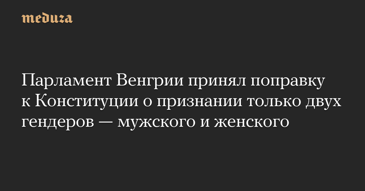 Парламент Венгрии принял поправку к Конституции о признании только двух гендеров — мужского и женского