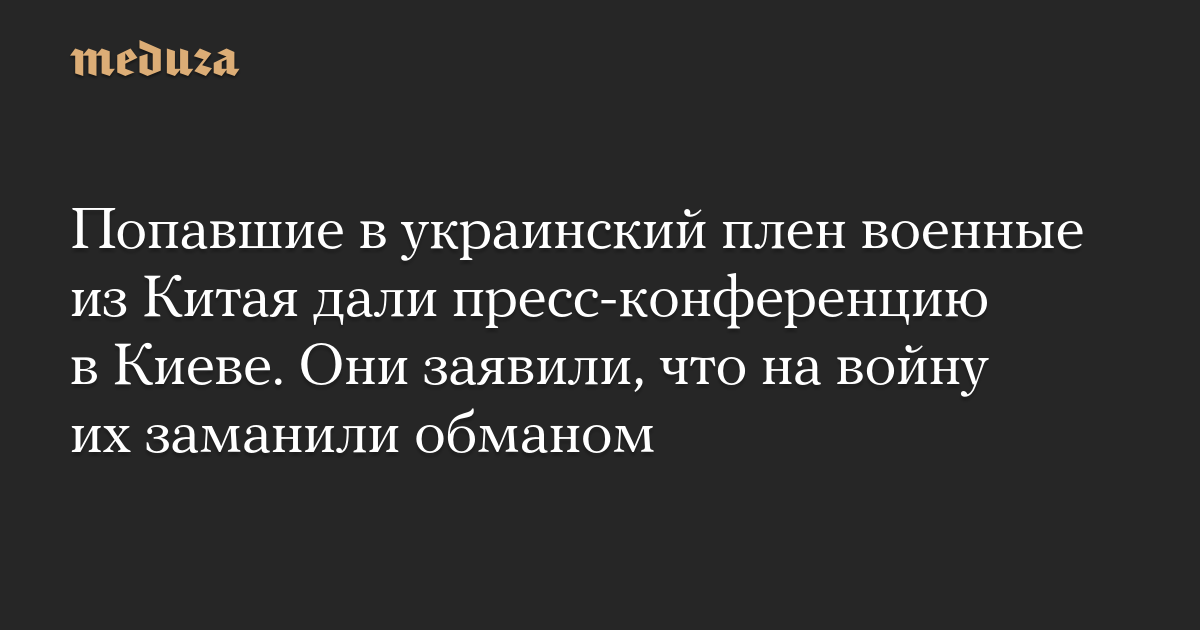 Попавшие в украинский плен военные из Китая дали пресс-конференцию в Киеве. Они заявили, что на войну их заманили обманом