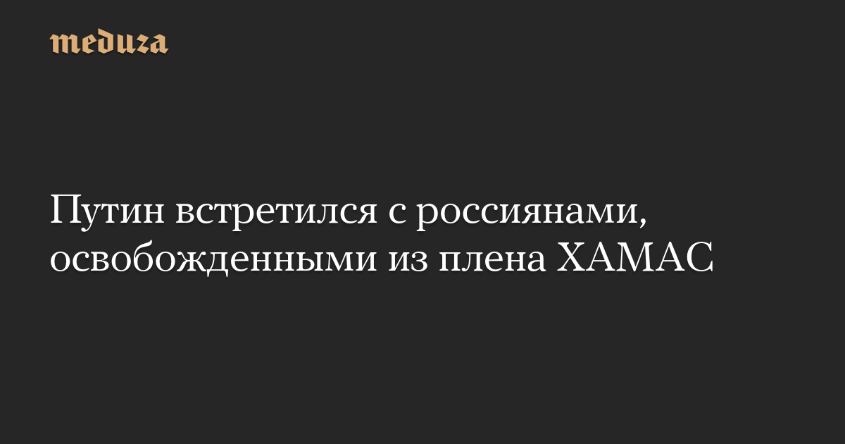 Владимир Путин встретился с гражданами России, освобожденными из плена террористов ХАМАС, сообщила пресс-служба Кремля.