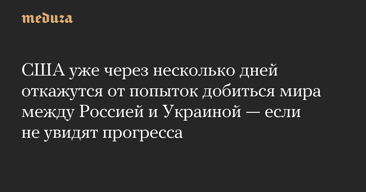 США уже через несколько дней откажутся от попыток добиться мира между Россией и Украиной — если не увидят прогресса