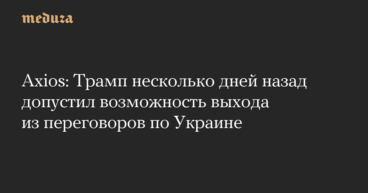 Axios: Трамп несколько дней назад допустил возможность выхода из переговоров по Украине