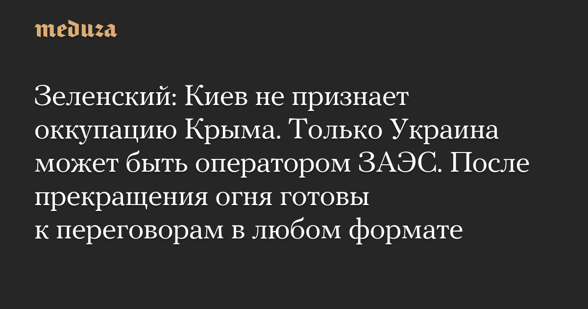 Зеленский: Киев не признает оккупацию Крыма. Только Украина может быть оператором ЗАЭС. После прекращения огня готовы к переговорам в любом формате