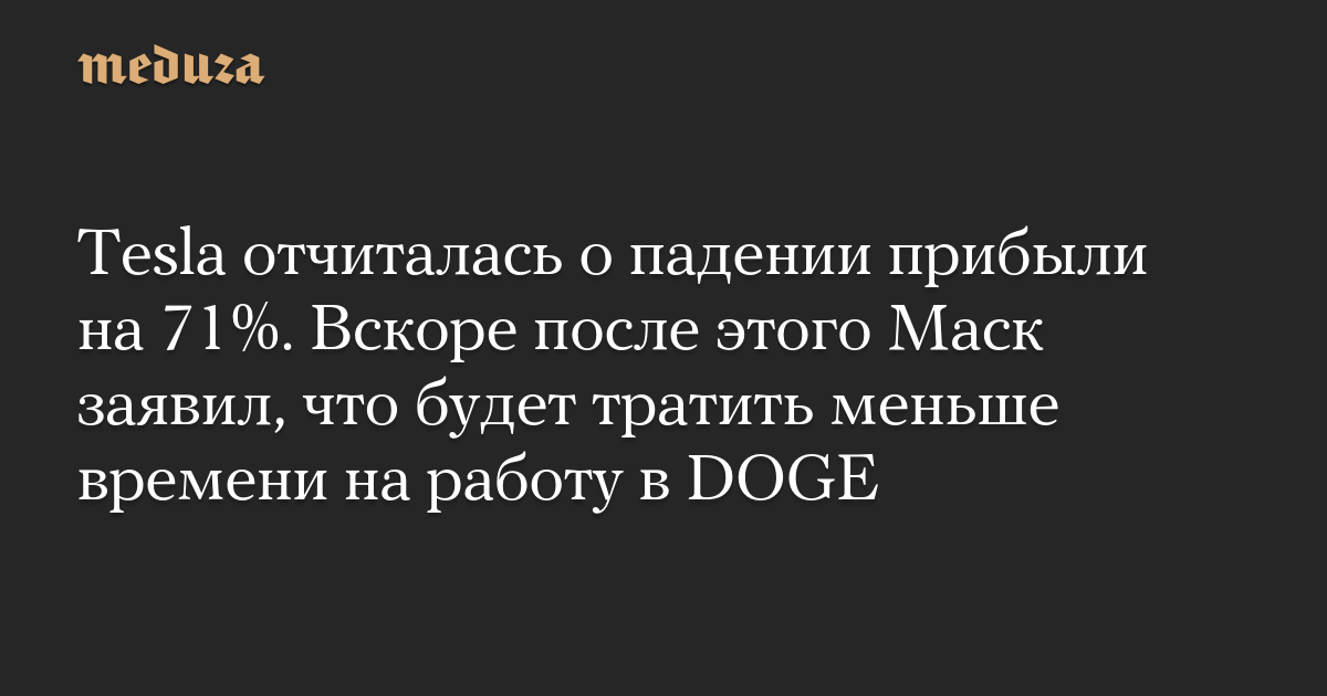 Tesla отчиталась о падении прибыли на 71%. Вскоре после этого Маск заявил, что будет тратить меньше времени на работу в DOGE