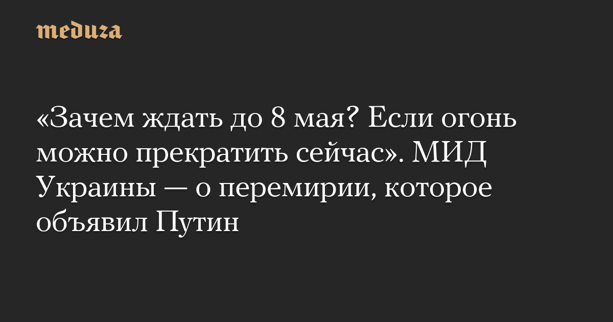 «Зачем ждать до 8 мая? Если огонь можно прекратить сейчас». МИД Украины — о перемирии, которое объявил Путин
