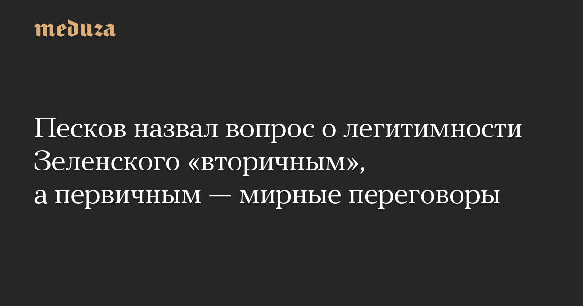 Песков назвал вопрос о легитимности Зеленского «вторичным», а первичным — мирные переговоры