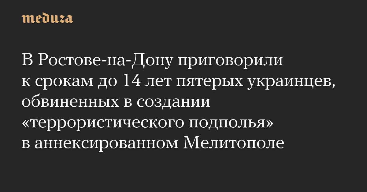 В Ростове-на-Дону приговорили к срокам до 14 лет пятерых украинцев, обвиненных в создании «террористического подполья» в аннексированном Мелитополе
