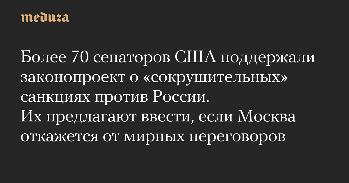 Более 70 сенаторов США поддержали законопроект о «сокрушительных» санкциях против России. Их предлагают ввести, если Москва откажется от мирных переговоров