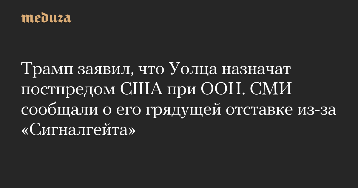 Трамп заявил, что Уолца назначат постпредом США при ООН. СМИ сообщали о его грядущей отставке из-за «Сигналгейта»