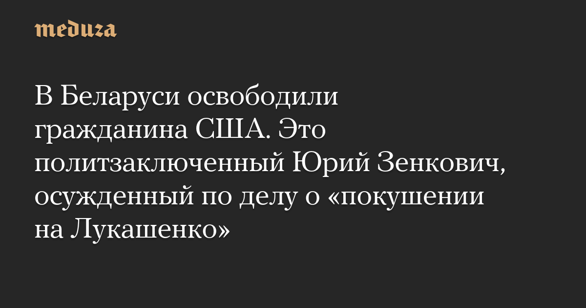 В Беларуси освободили гражданина США. Это политзаключенный Юрий Зенкович, осужденный по делу о «покушении на Лукашенко»