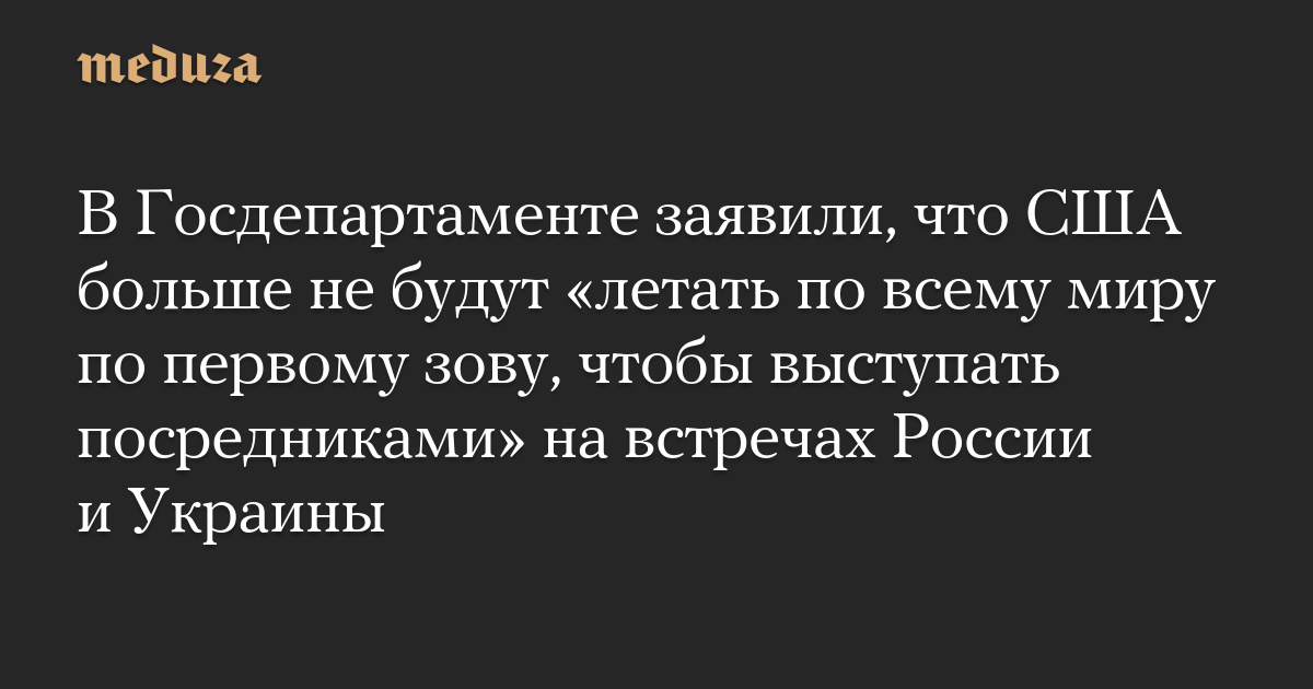 В Госдепартаменте заявили, что США больше не будут «летать по всему миру по первому зову, чтобы выступать посредниками» на встречах России и Украины
