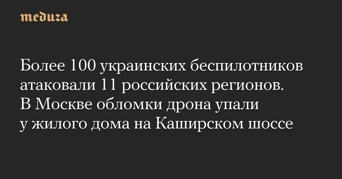 Более 100 украинских беспилотников атаковали 11 российских регионов. В Москве обломки дрона упали у жилого дома на Каширском шоссе