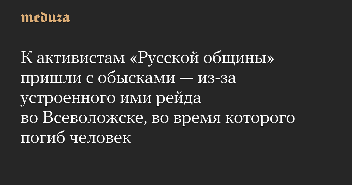 К активистам «Русской общины» пришли с обысками — из-за устроенного ими рейда во Всеволожске, во время которого погиб человек