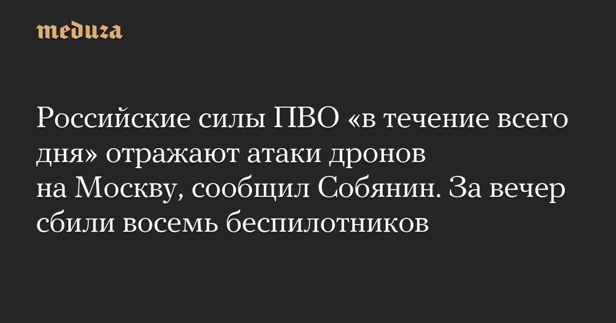 Российские силы ПВО «в течение всего дня» отражают атаки дронов на Москву, сообщил Собянин. За вечер сбили восемь беспилотников
