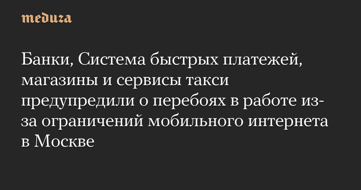 Банки, Система быстрых платежей, магазины и сервисы такси предупредили о перебоях в работе из-за ограничений мобильного интернета в Москве