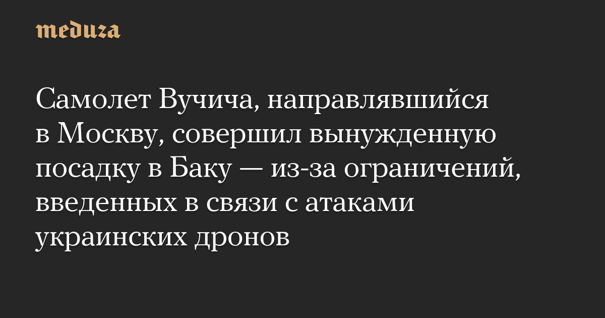 Самолет Вучича, направлявшийся в Москву, совершил вынужденную посадку в Баку — из-за ограничений, введенных в связи с атаками украинских дронов