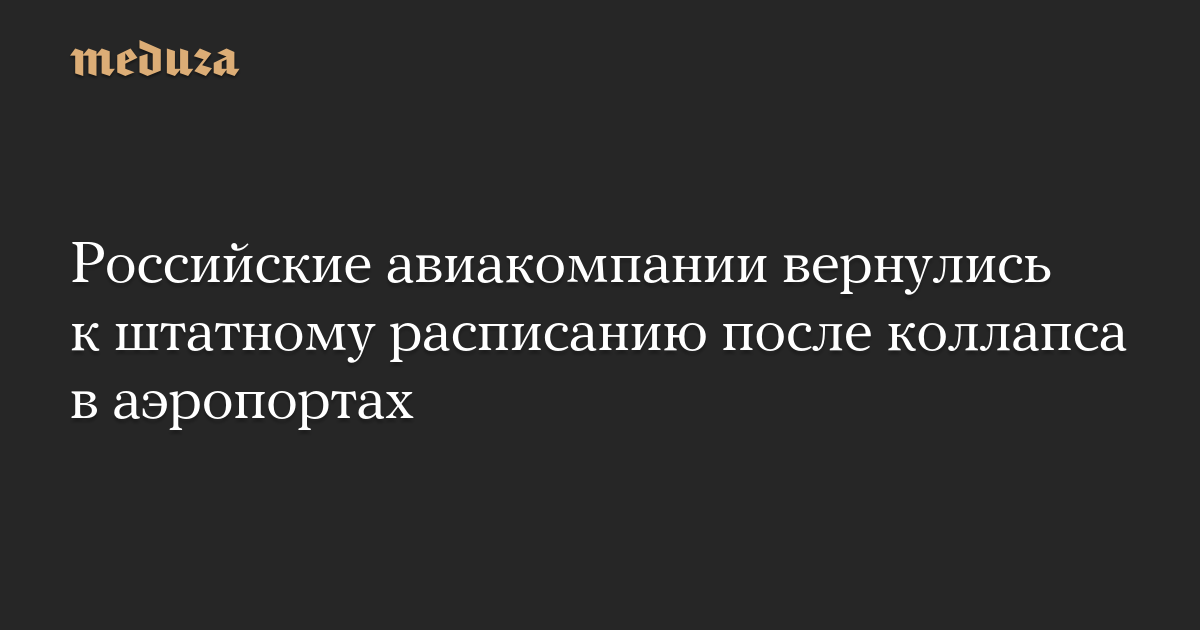 Российские авиакомпании вернулись к штатному расписанию после коллапса в аэропортах