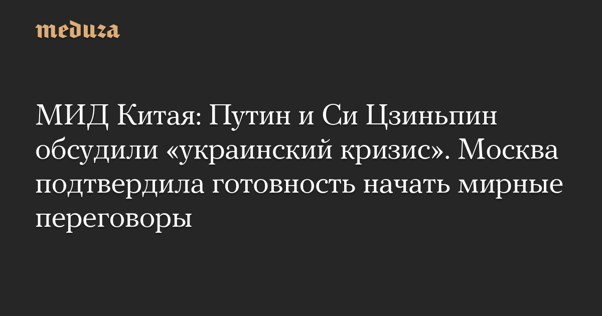 МИД Китая: Путин и Си Цзиньпин обсудили «украинский кризис». Москва подтвердила готовность начать мирные переговоры