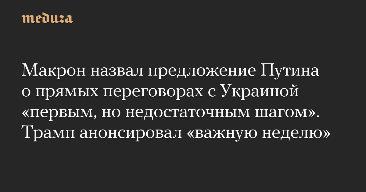 Макрон назвал предложение Путина о прямых переговорах с Украиной «первым, но недостаточным шагом». Трамп анонсировал «важную неделю»