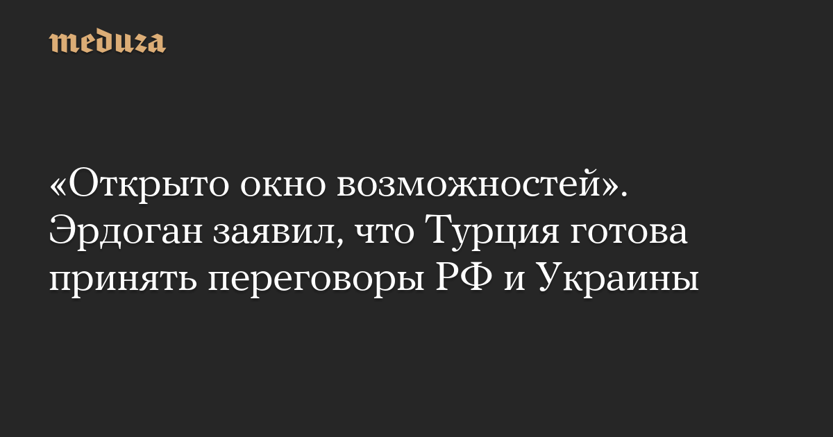 «Открыто окно возможностей». Эрдоган заявил, что Турция готова принять переговоры РФ и Украины