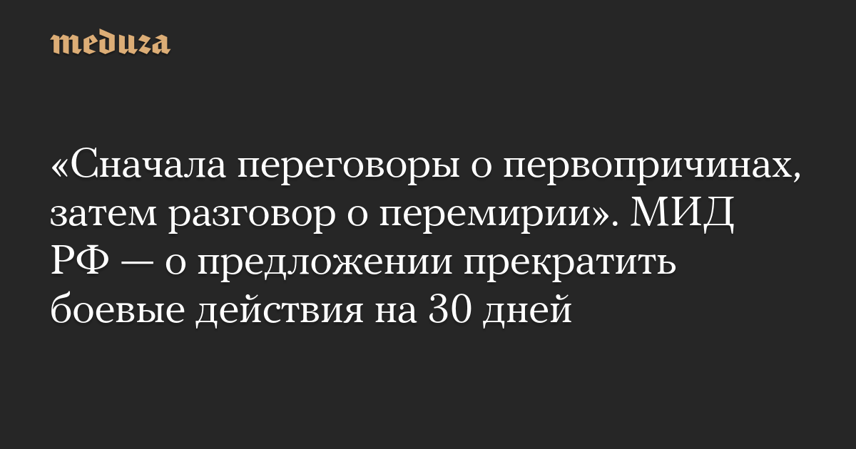 «Сначала переговоры о первопричинах, затем разговор о перемирии». МИД РФ — о предложении прекратить боевые действия на 30 дней