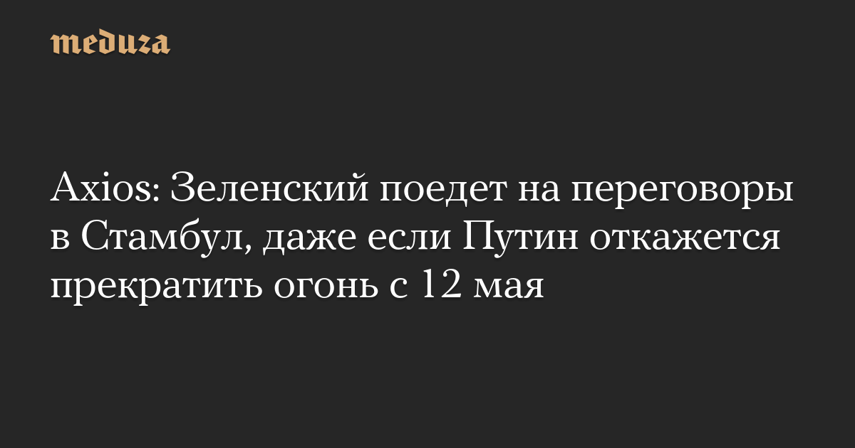 Axios: Зеленский поедет на переговоры в Стамбул, даже если Путин откажется прекратить огонь с 12 мая