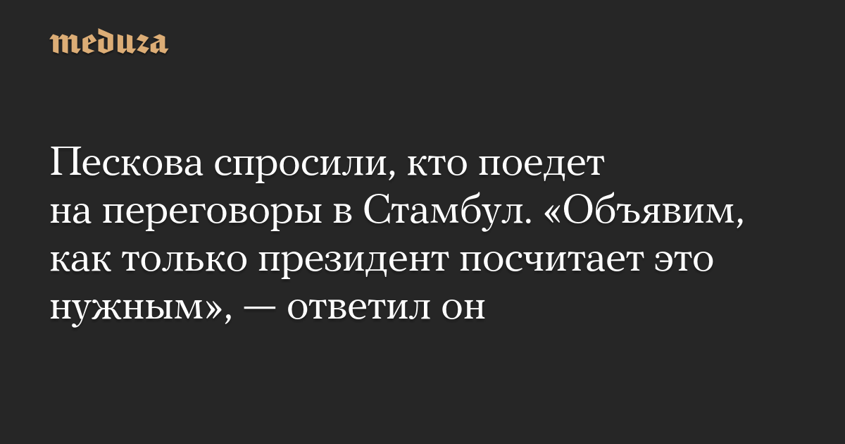 Пескова спросили, кто поедет на переговоры в Стамбул. «Объявим, как только президент посчитает это нужным», — ответил он