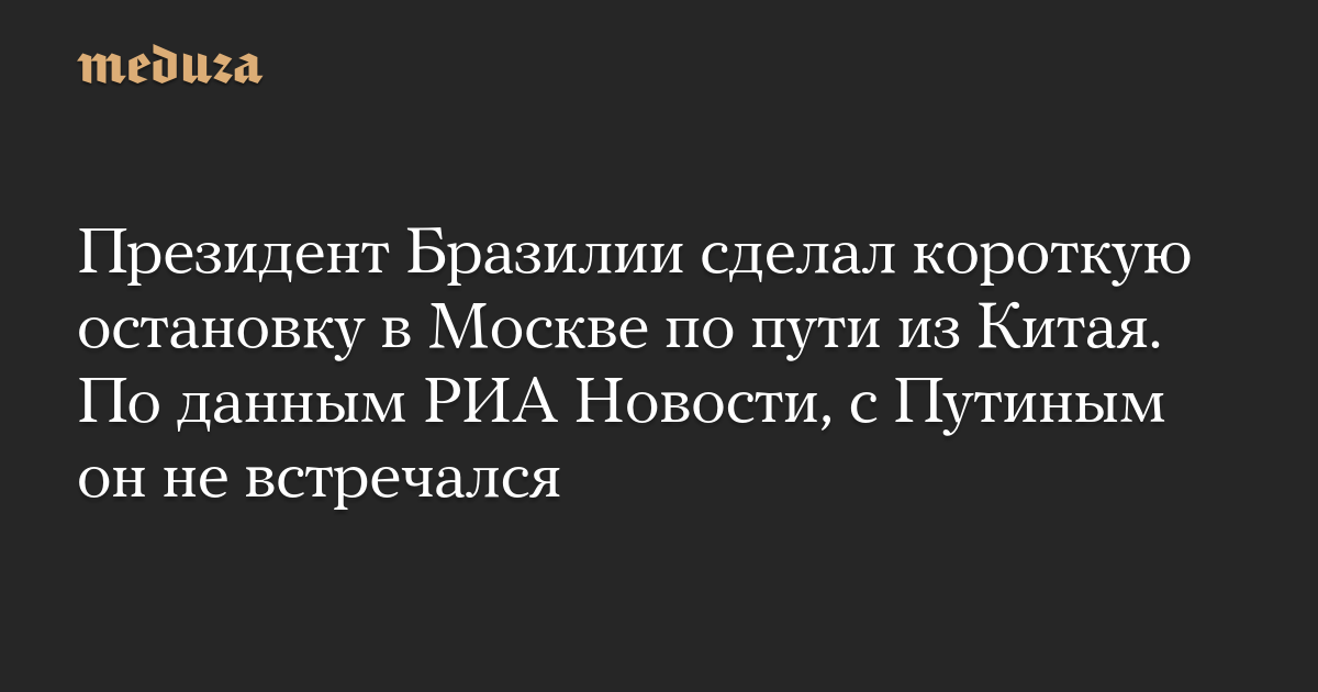 Президент Бразилии сделал короткую остановку в Москве по пути из Китая. По данным РИА Новости, с Путиным он не встречался