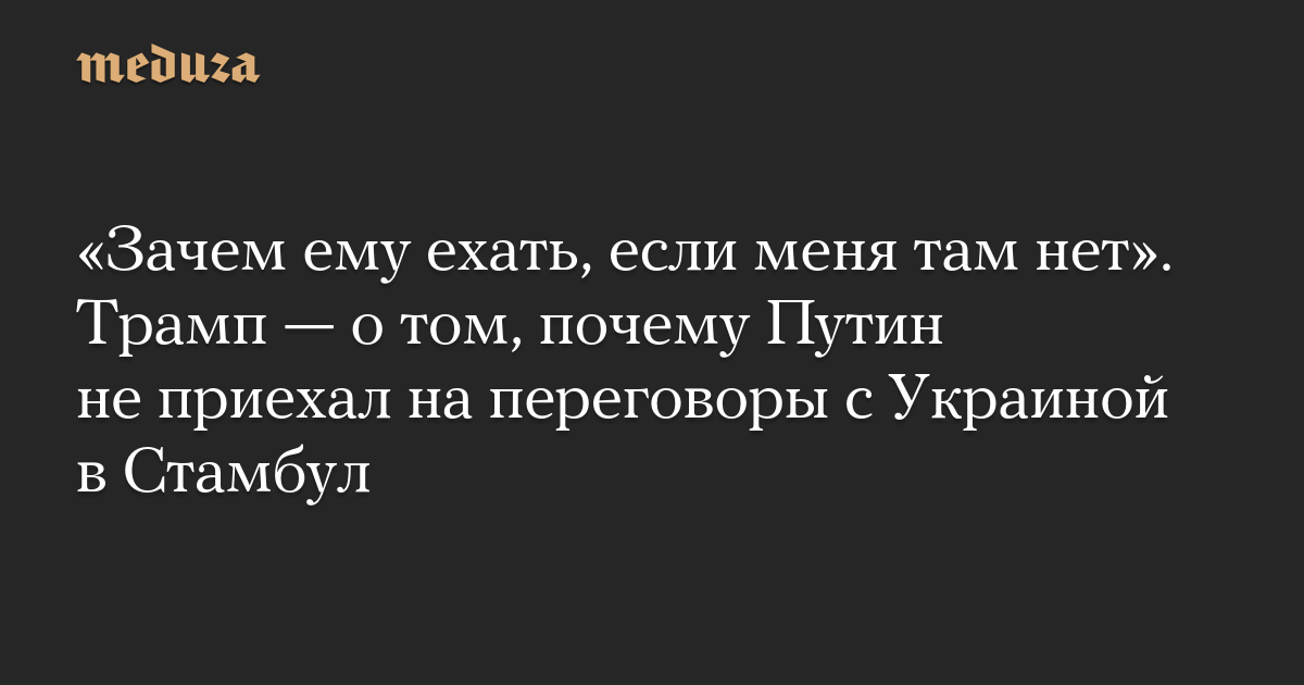 Президент России Владимир Путин не поехал в Стамбул, потому что туда не приехал президент США Дональд Трамп. Такую версию причин отказа Путина от участия в российско-украинских переговорах сам Трамп выдвинул в разговоре с журналистами.