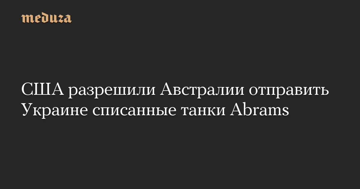 США разрешили Австралии отправить Украине списанные танки Abrams