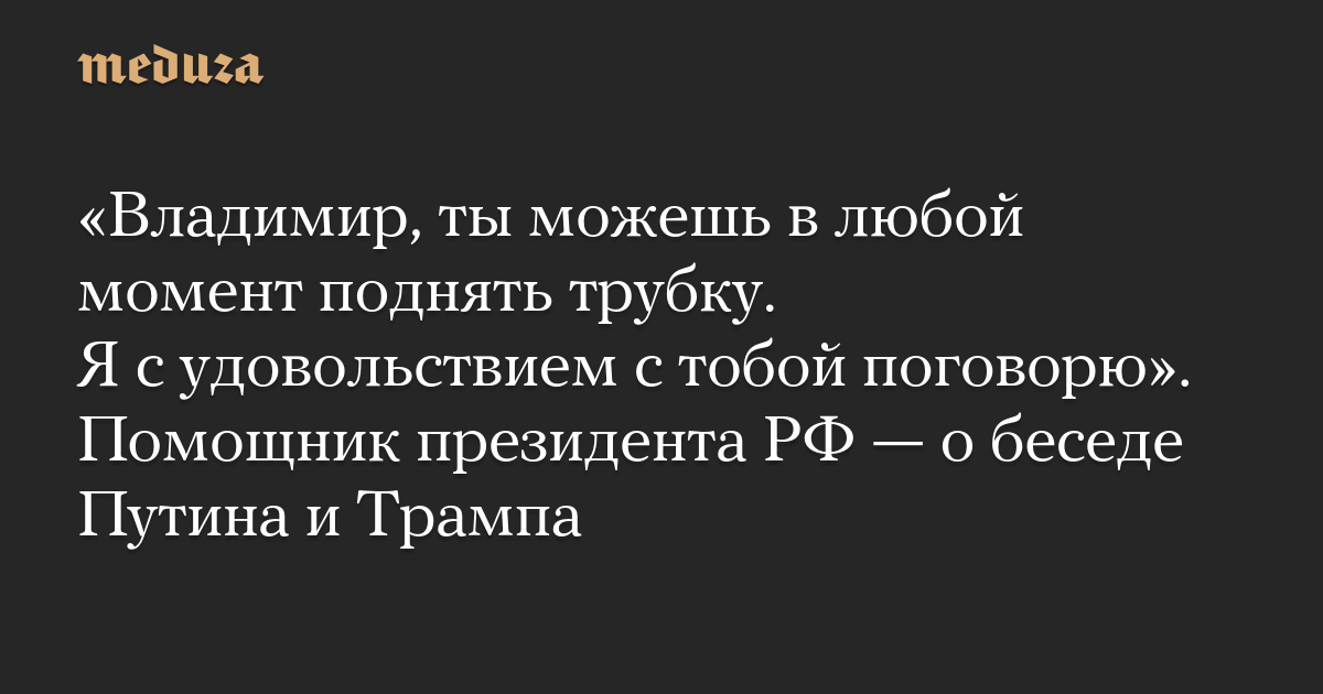 «Владимир, ты можешь в любой момент поднять трубку. Я с удовольствием с тобой поговорю». Помощник президента РФ — о беседе Путина и Трампа