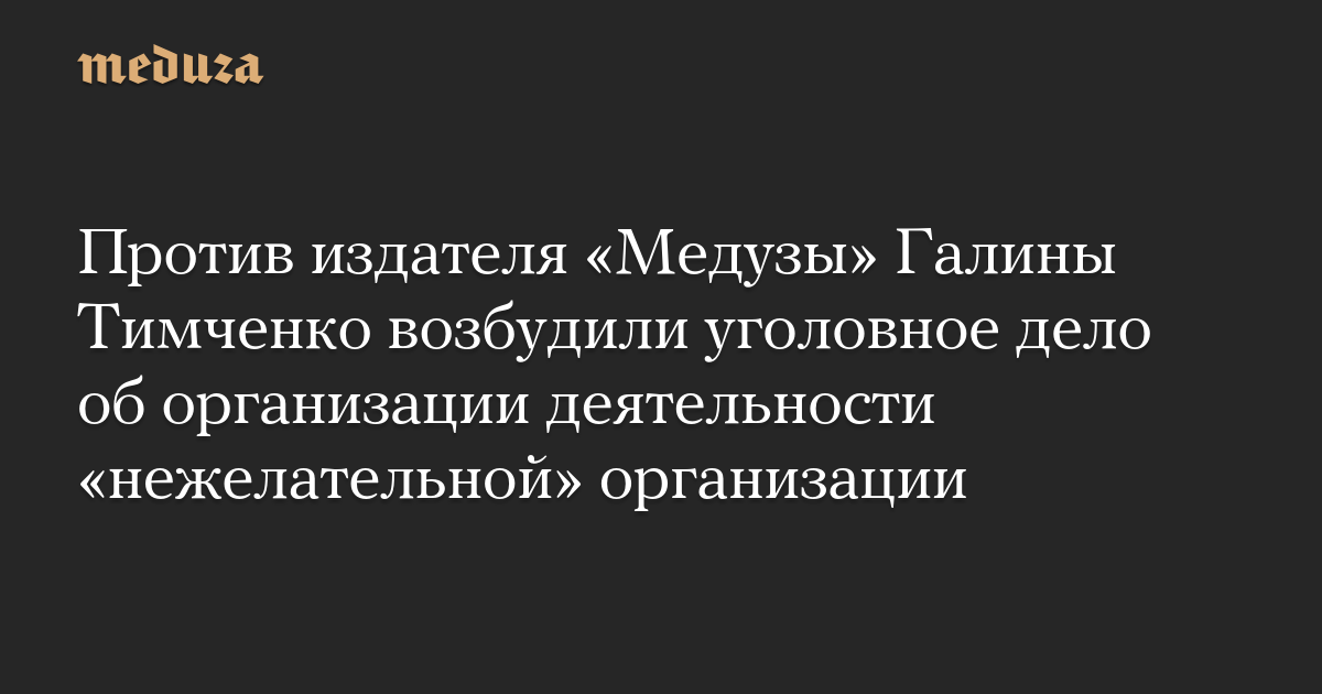 Против издателя «Медузы» Галины Тимченко возбудили уголовное дело об организации деятельности «нежелательной» организации