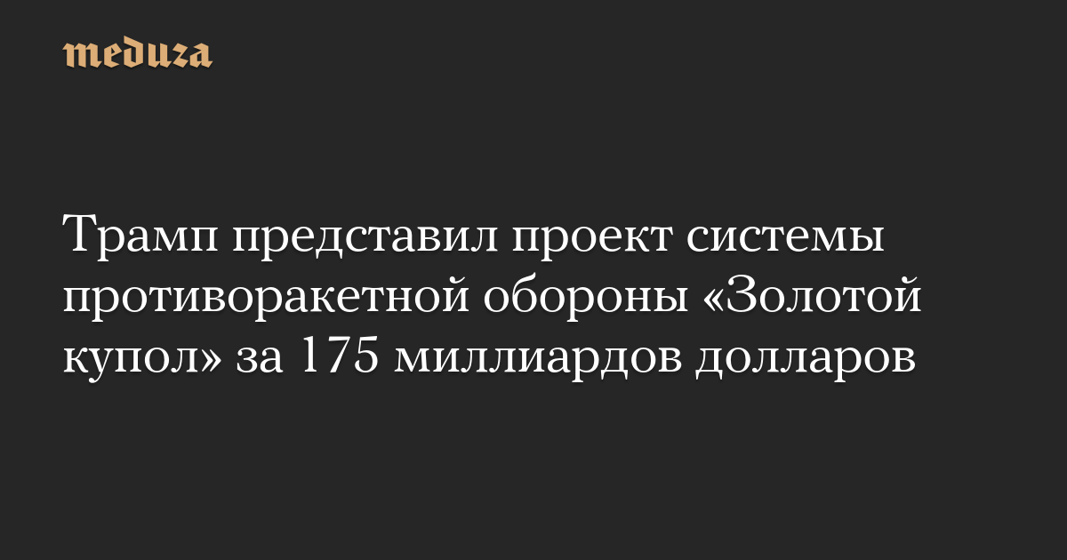 Трамп представил проект системы противоракетной обороны «Золотой купол» за 175 миллиардов долларов