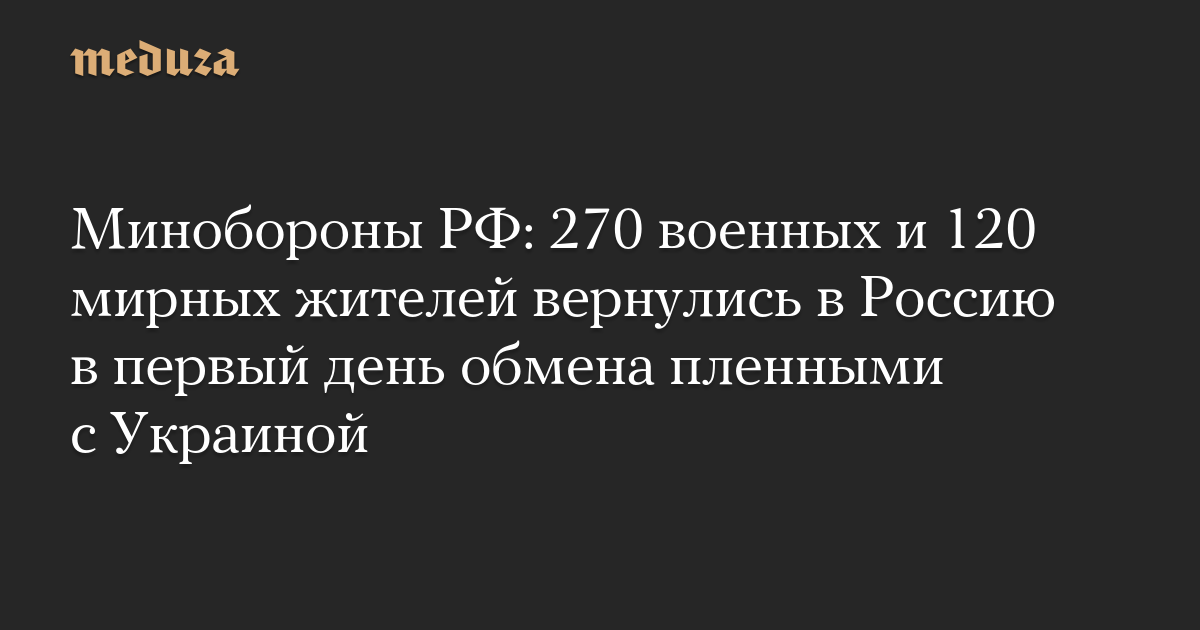 Минобороны РФ: 270 военных и 120 мирных жителей вернулись в Россию в первый день обмена пленными с Украиной