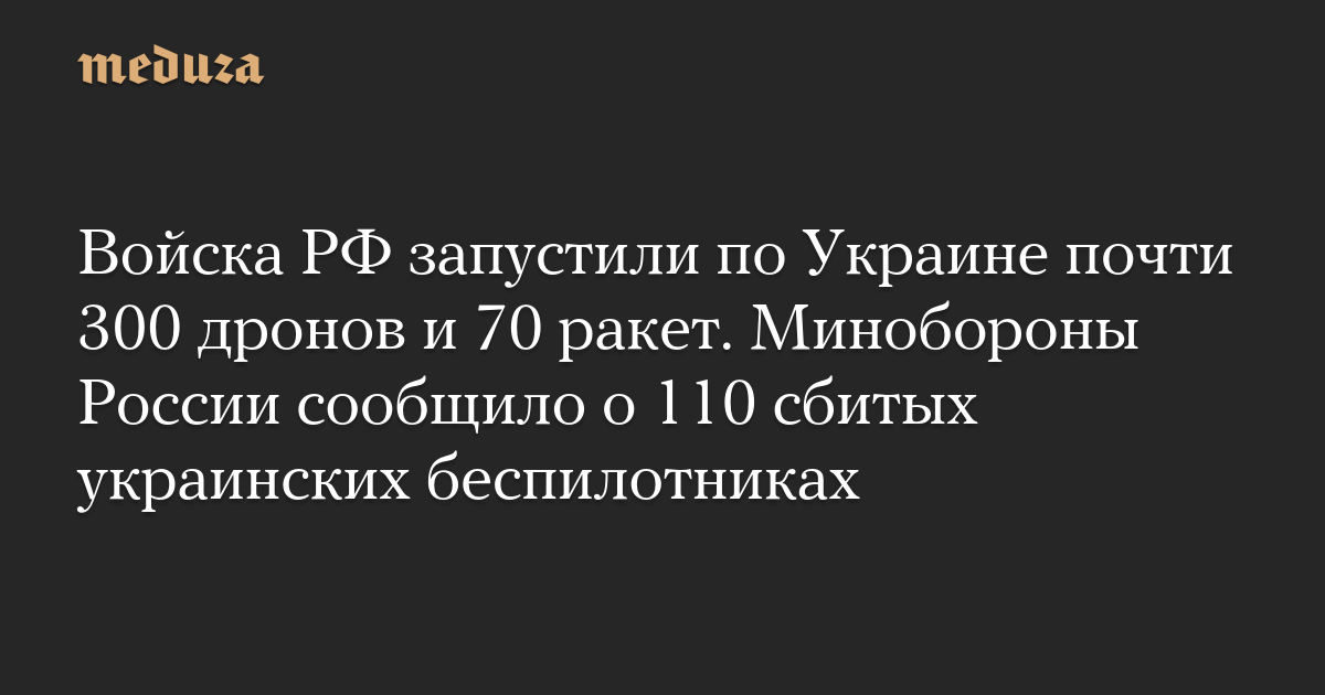 Войска РФ запустили по Украине почти 300 дронов и 70 ракет. Минобороны России сообщило о 110 сбитых украинских беспилотниках
