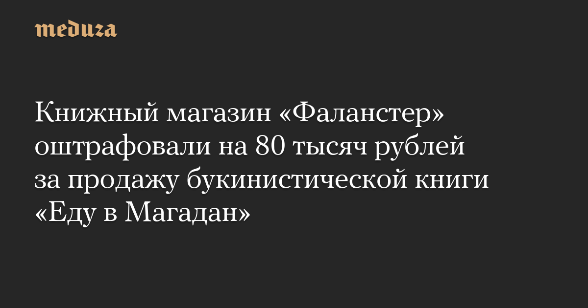 Книжный магазин «Фаланстер» оштрафовали на 80 тысяч рублей за продажу букинистической книги «Еду в Магадан»