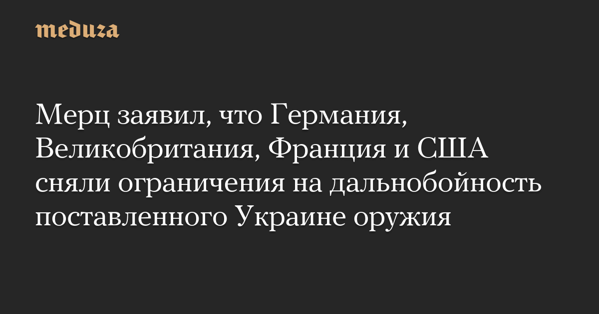 «Никаких ограничений по дальности для оружия, поставляемого в Украину, больше нет. Ни со стороны Великобритании, ни со стороны Франции, ни со стороны нас. Со стороны американцев тоже нет», — сказал Мерц.