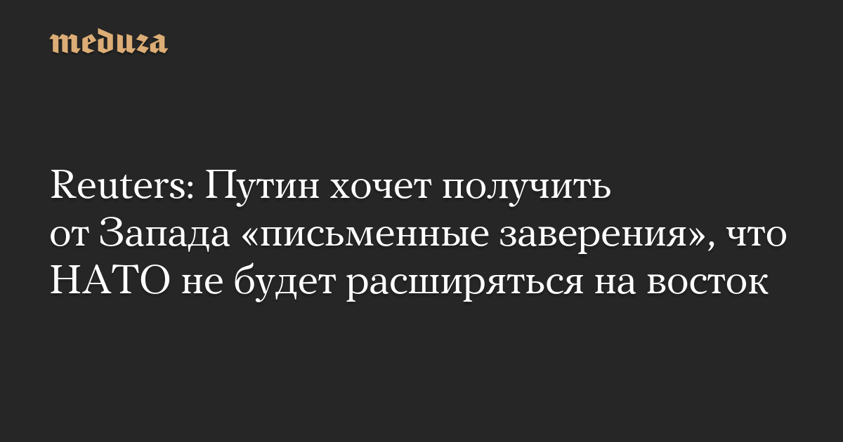 Владимир Путин для завершения российско-украинской войны хочет получить от ведущих стран Запада «письменные заверения» в том, что НАТО не будет расширяться на восток, сообщает Reuters со ссылкой на источники, знакомые с позицией Кремля.