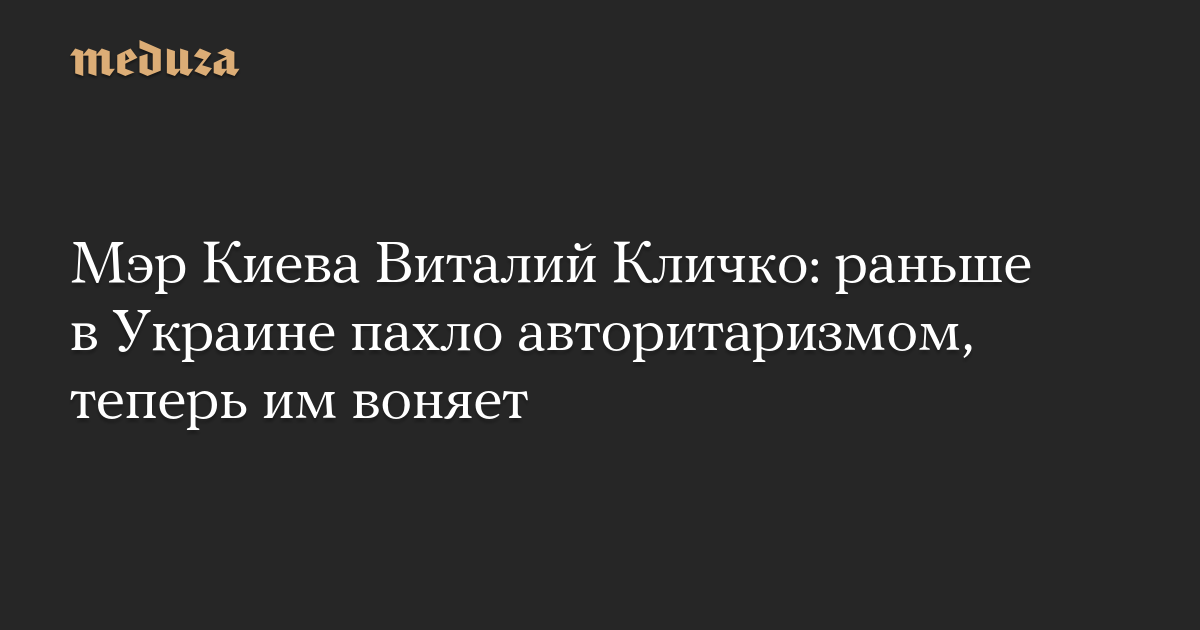 «Это искоренение демократических принципов и институтов под прикрытием войны. Однажды я сказал, что в нашей стране пахнет авторитаризмом. Теперь им воняет», — заявил Кличко.