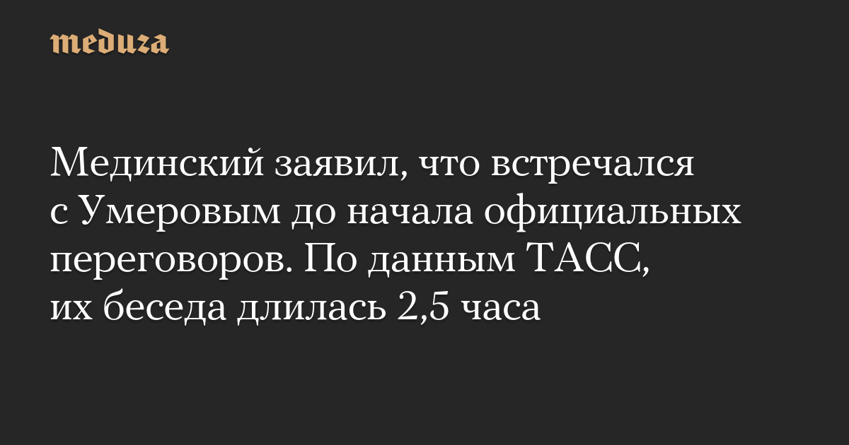 Мединский заявил, что встречался с Умеровым до начала официальных переговоров. По данным ТАСС, их беседа длилась 2,5 часа