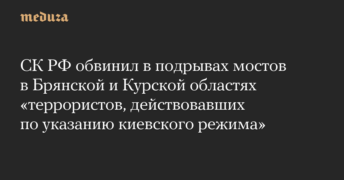 СК РФ обвинил в подрывах мостов в Брянской и Курской областях «террористов, действовавших по указанию киевского режима»